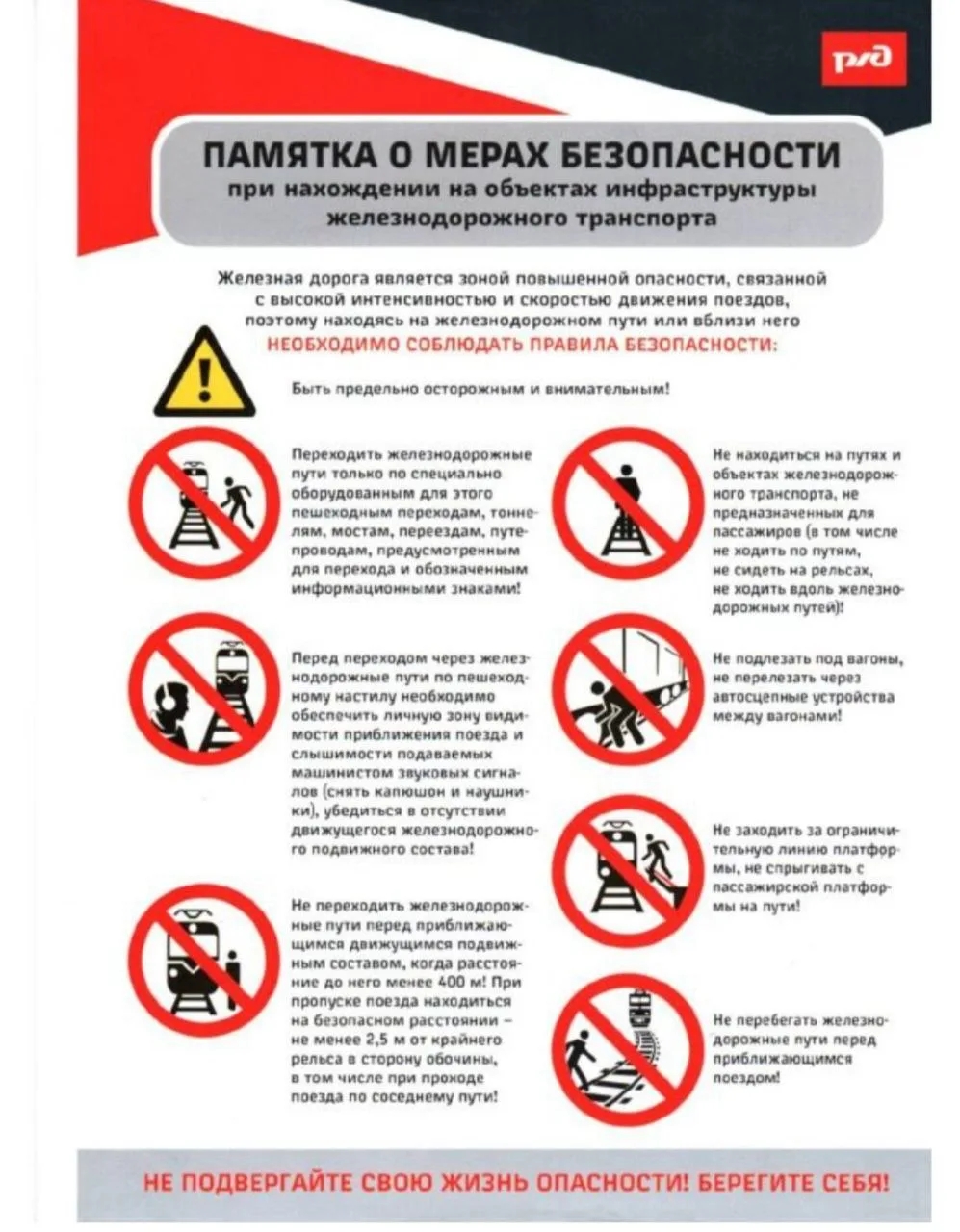 Памятки в рамках декады о мерах безопасности при нахождении на объектах инфраструктуры железнодорожного транспорта